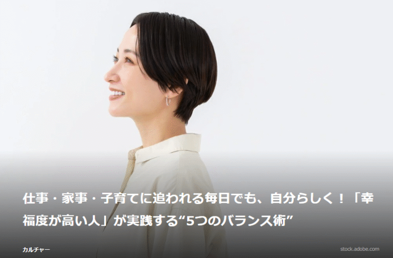 仕事・家事・子育てに追われる毎日でも、自分らしく!「幸福度が高い人」が実践する“5つのバランス術”
